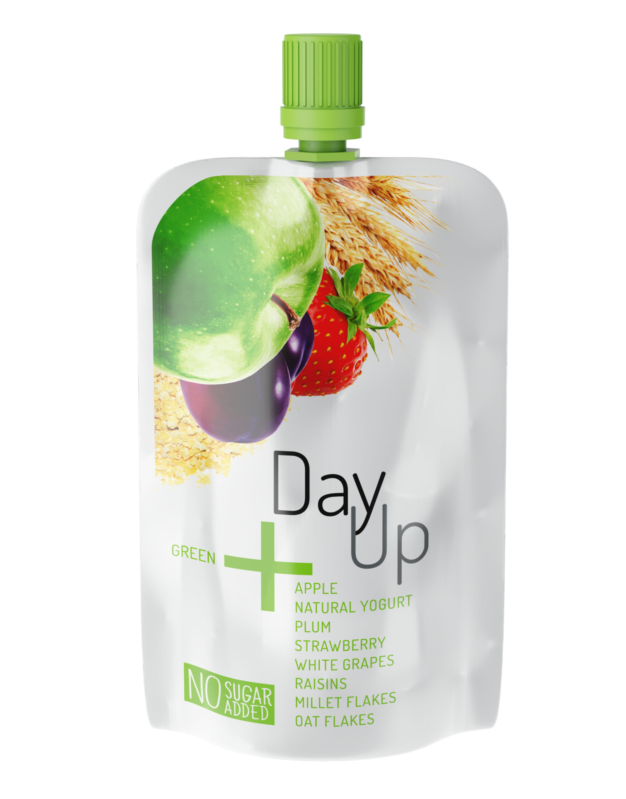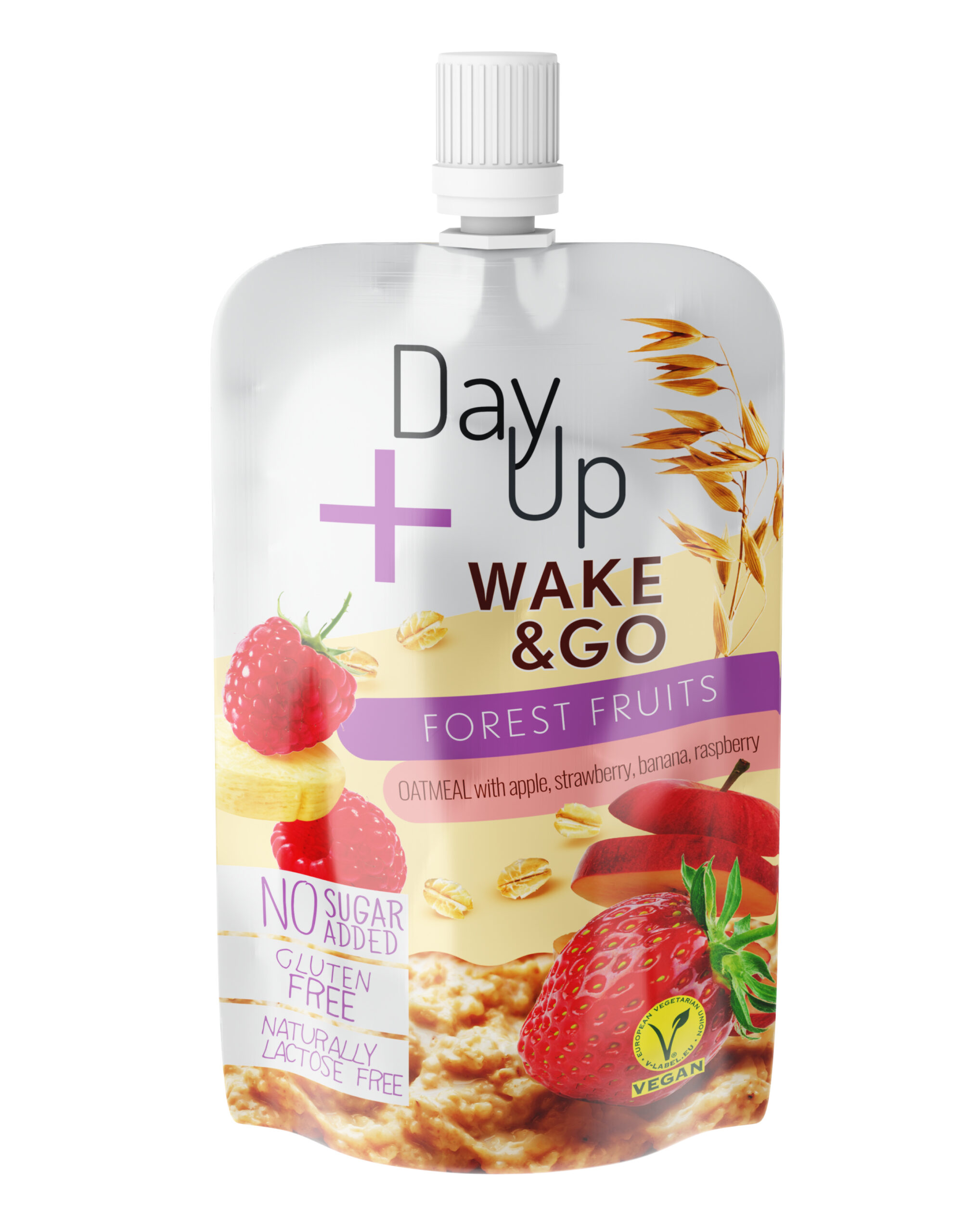 DayUp WAKE&GO SWEET APPLE Ingredients: apple puree 59,4 %, banana puree 15 %, water, gluten-free oat extract 8 %, gluten-free oat flakes 5 %, lemon concentrate, natural vanilla aroma.