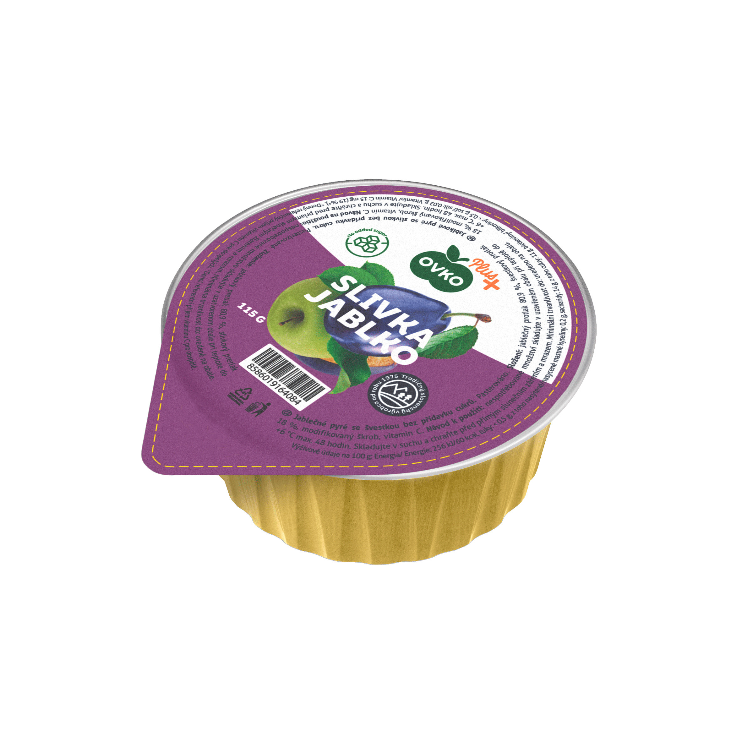 OVKO Plus 120 g – fruit puree, for kids + adults FOTKE The new range of OVKO Plus products is intended for older children – kindergarteners, schoolchildren as well as students and adults. Our delicacies made from fruit will serve as a tasty snack, lunch or healthy treat.